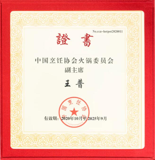 出任中國烹飪協(xié)會(huì)火鍋委員會(huì)副主席一職