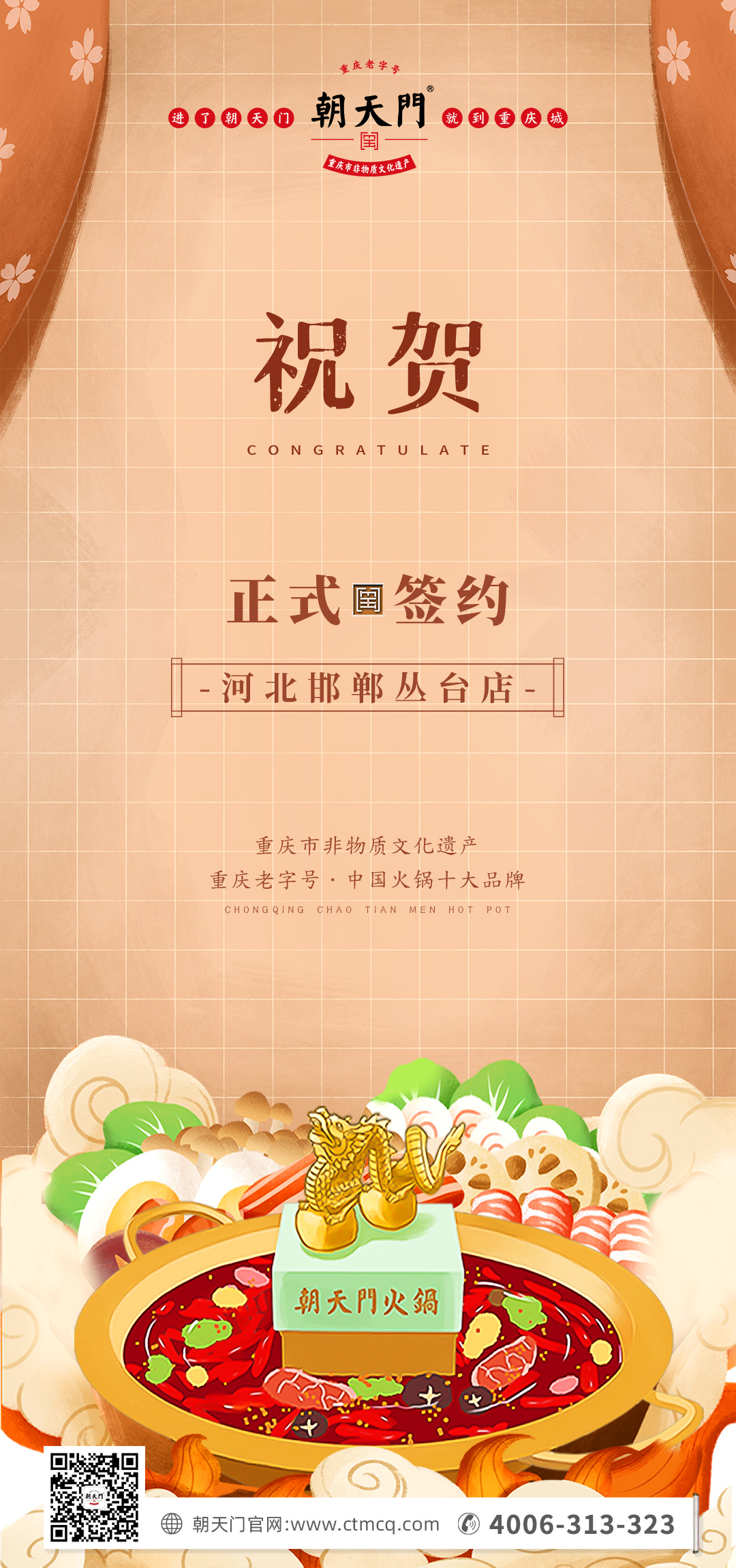 熱烈祝賀河北邯鄲叢臺曹總與朝天門火鍋達(dá)成合作協(xié)議!