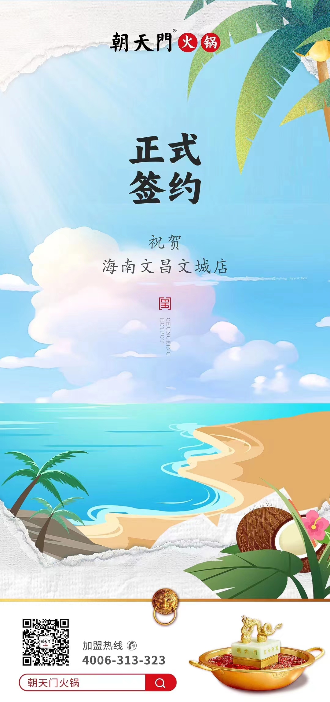 喜訊:海南文昌文城店吳總與朝天門火鍋達成合作協(xié)議!